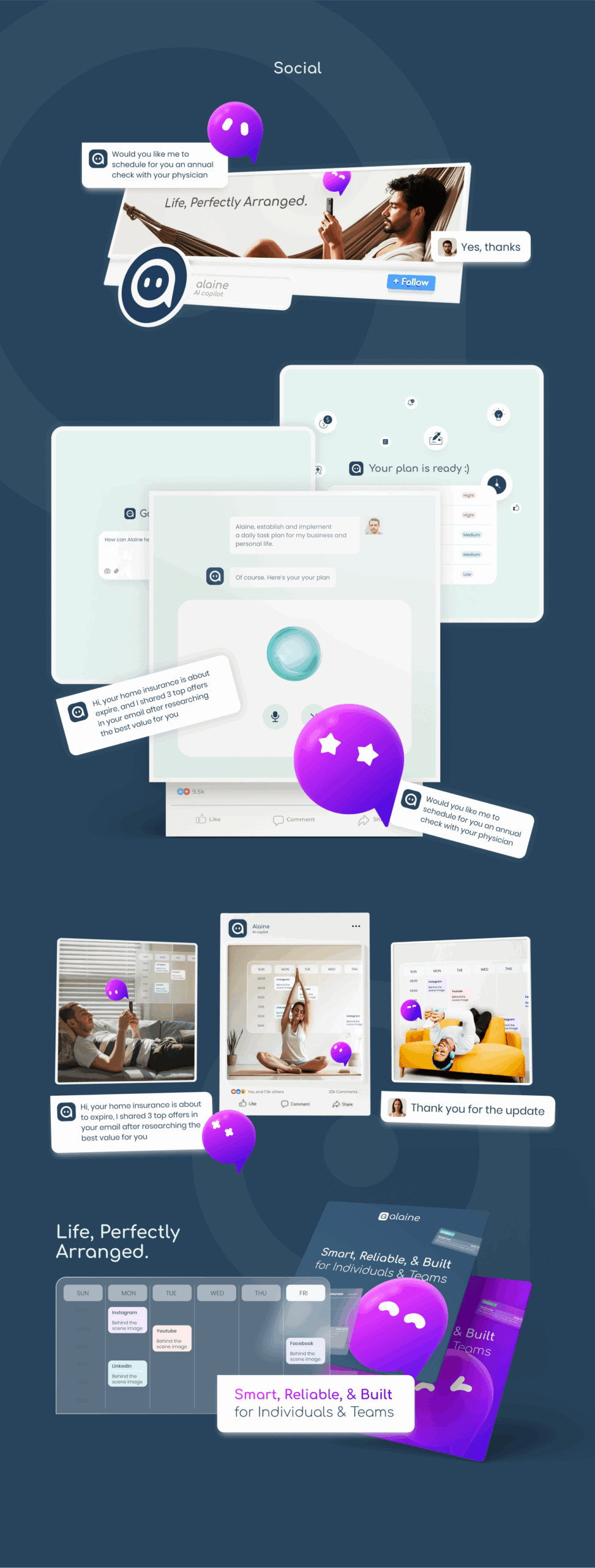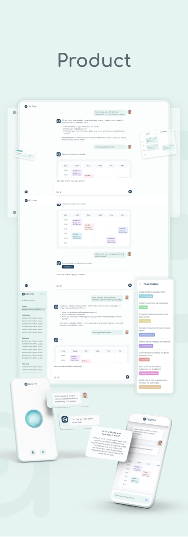 The new brand identity and website present Alaine as a modern, reliable, and user-friendly AI assistant that makes productivity effortless. The unified visual style reinforces credibility, simplifies the product’s value communication, and creates a memorable presence in the market. This transformation not only strengthens Alaine’s positioning but also provides a scalable foundation for future product development, new features, and market expansion.