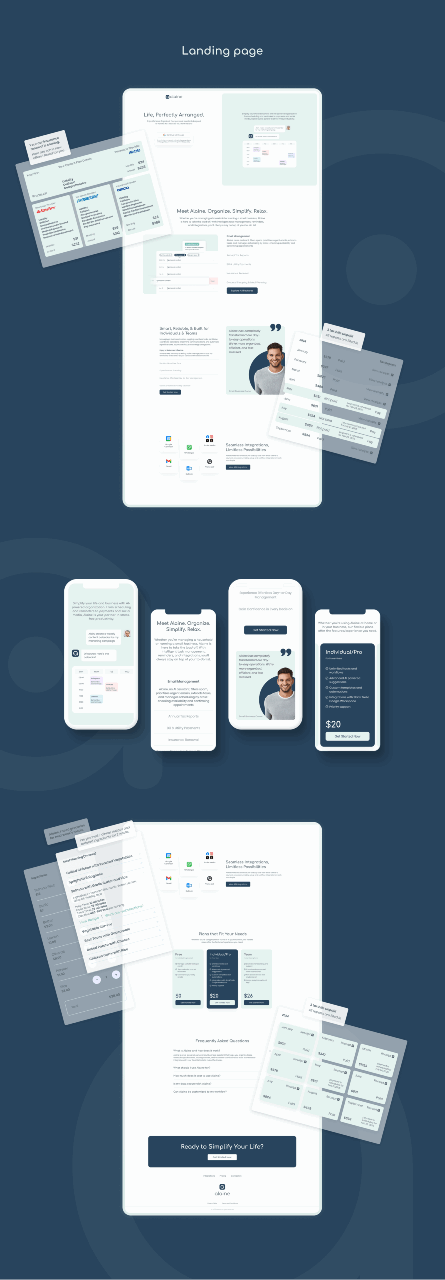 Alaine is an AI-powered personal and business assistant designed to simplify life through intelligent task management, scheduling, email organization, and workflow automation. Positioned at the intersection of productivity, AI, and everyday usability, the company approached us with the goal of creating a strong, unified brand identity and a digital presence that clearly communicates its value. The challenge was to present a highly technological product in a way that feels approachable, trustworthy, and relevant to both individual users and small business owners, while differentiating it in a rapidly growing market of AI solutions.