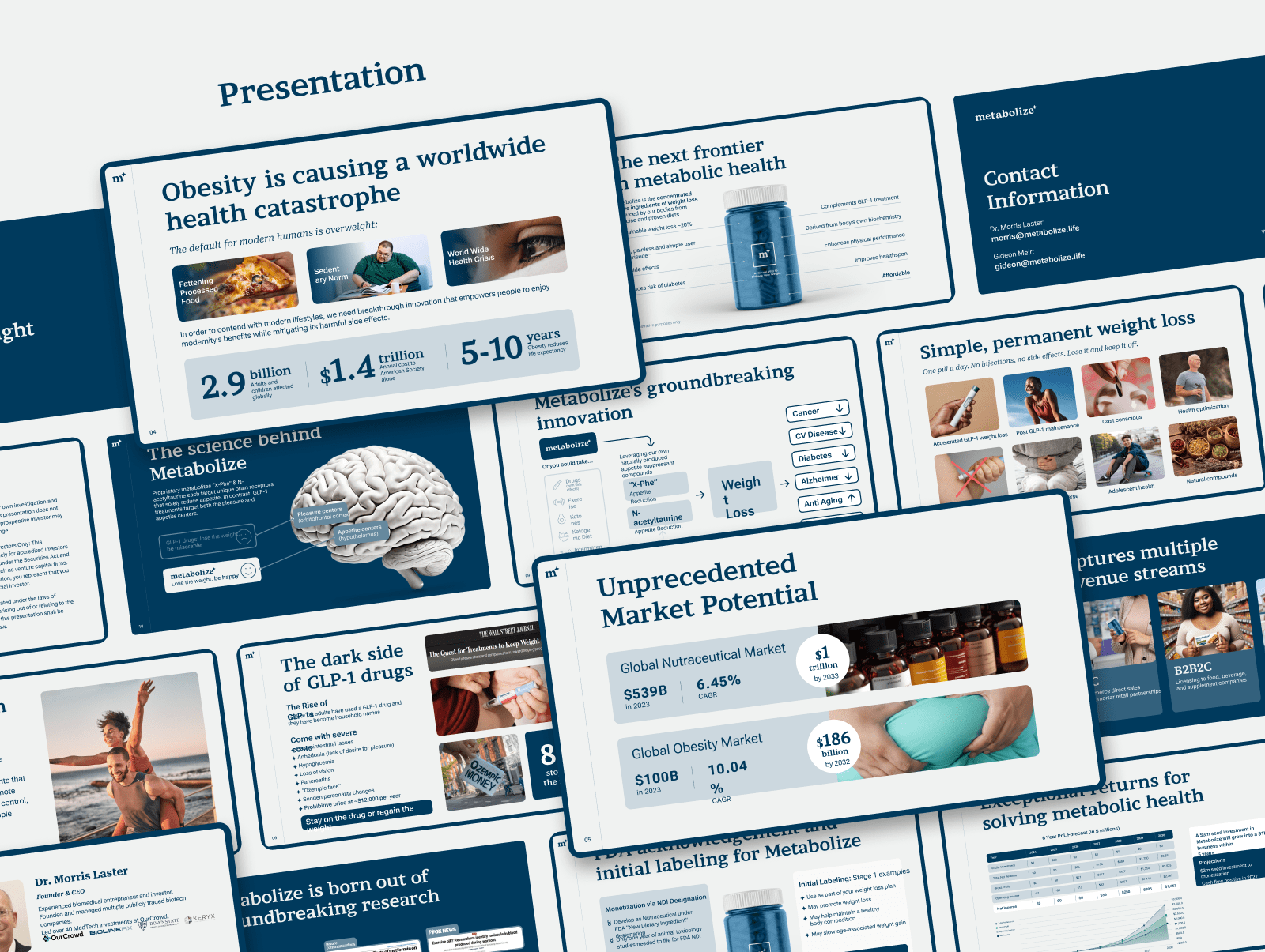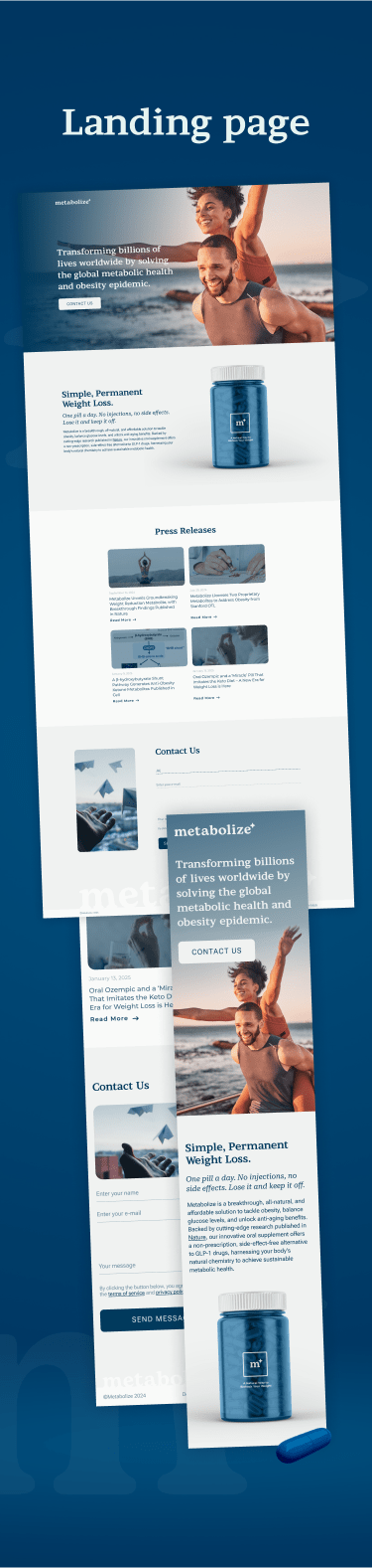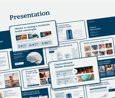 The result is a strong, modern, and science-driven brand identity that communicates both innovation and accessibility. The new visual language has strengthened consumer trust, highlighted the product’s unique positioning, and created a clear, memorable image in a competitive market. With a unified style across the website, presentations, and marketing materials, the brand is now well-positioned for international expansion and ready to scale its impact in the fight against the global metabolic health and obesity epidemic.