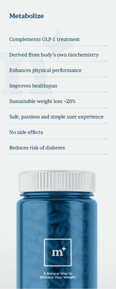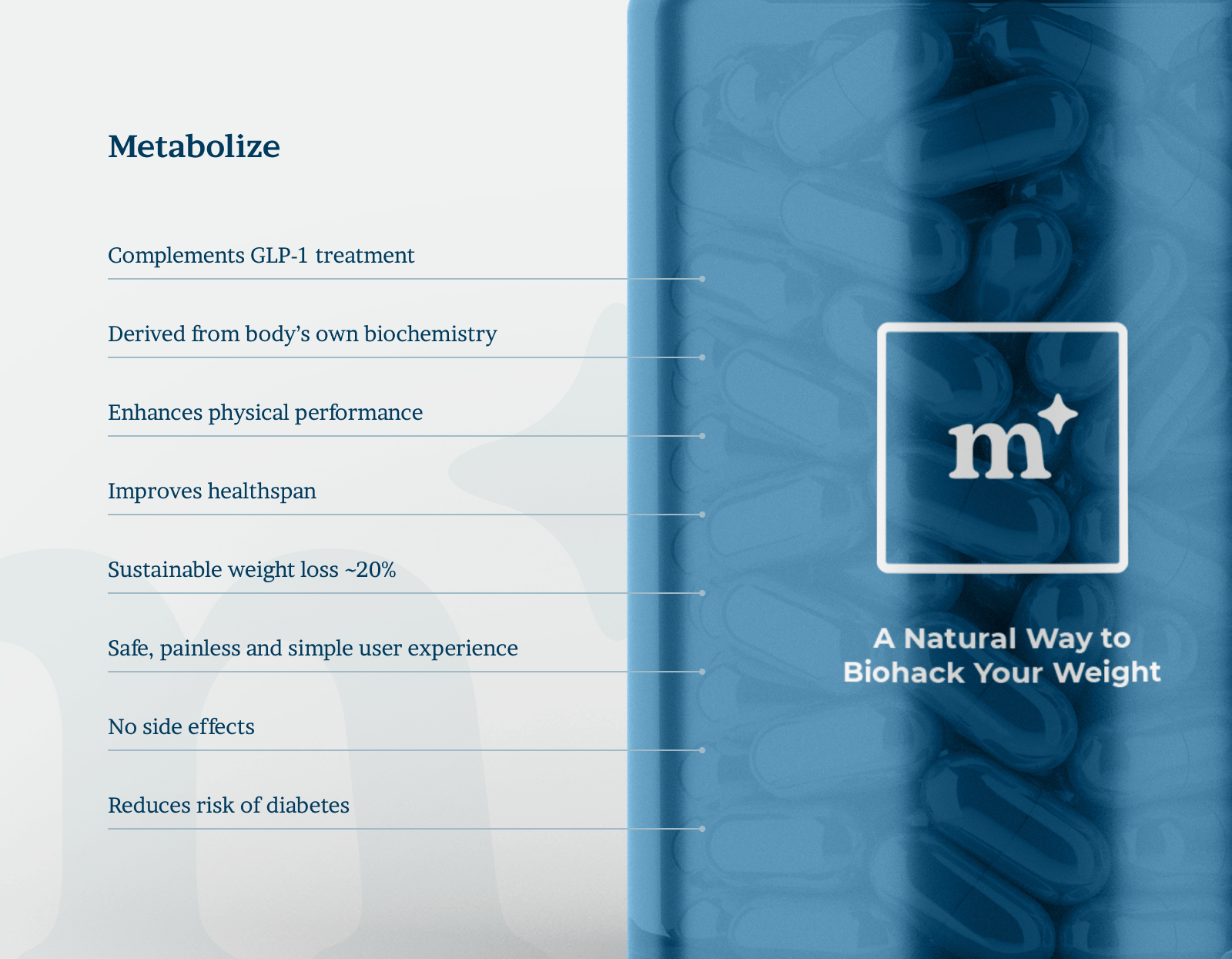 Leveraging the body's innate chemistry Metabolize created natural supplements that safely and sustainably promote metabolic health, appetite control, and normal weight for people worldwide.